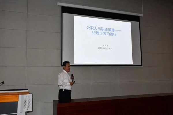 10月20日下午,省人社厅党组成员、副厅长洪长春为全省人社系统推进治理能力现代化暨党支部书记专题培训班作专题授课。洪长春副厅长以“公职人员职业道德——行胜于言的德行”为题,围绕基层干部生态、职业风险、公共职业道德、职业倦怠、职业压力、职业危机、职业冷漠、激励机制、容错机制、机关文化和情感传递等方面,深入剖析社会现象和现状,引导公职人员做到干一行、爱一行,进行换位思考,积极践行职业初心。 (机关党委)